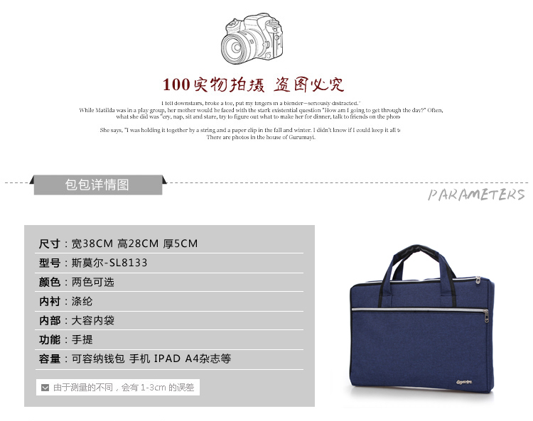 商品名称:斯莫尔(simoer) 8133 商务办公手提布袋 立体双拉链文件袋会议袋 耐用大容量资料包 可定制logo 浅灰色