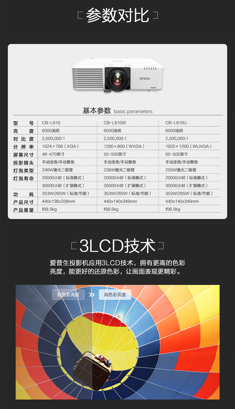 商品名称:爱普生 CB-L610U 投影机