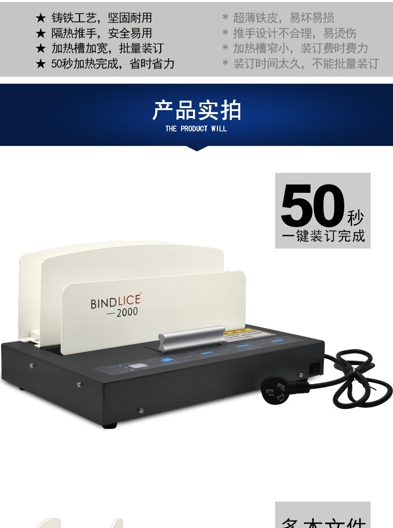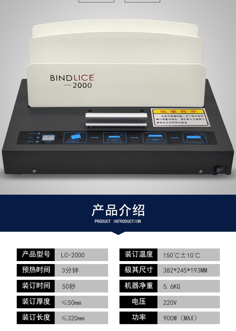 商品名称:立册(LICE)热熔装订机2000 无需打孔快速加热 A4全自动胶装机 胶印机
