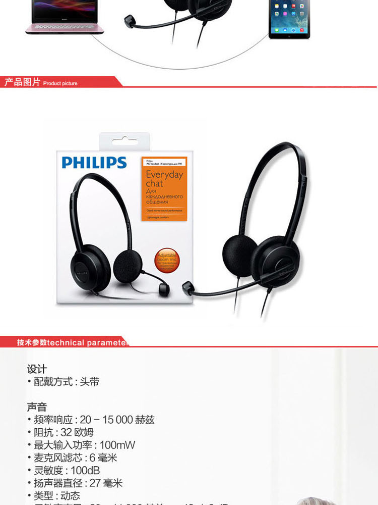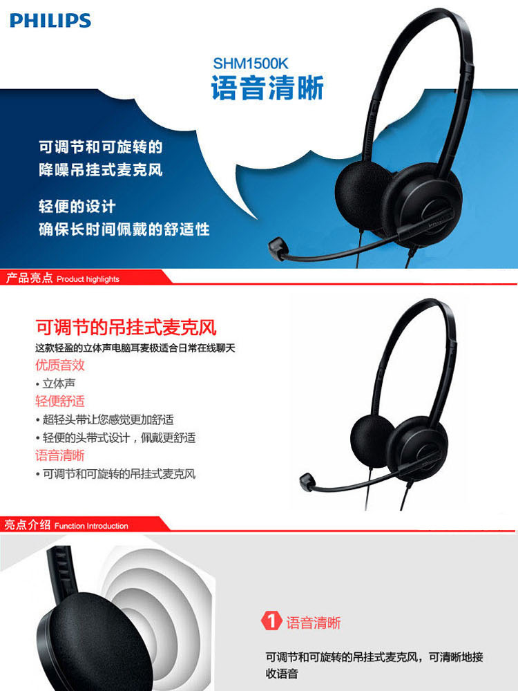 商品名称:飞利浦 SHM1500K/93 耳机