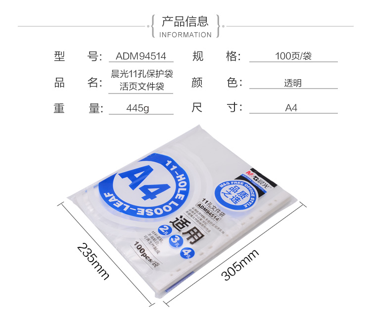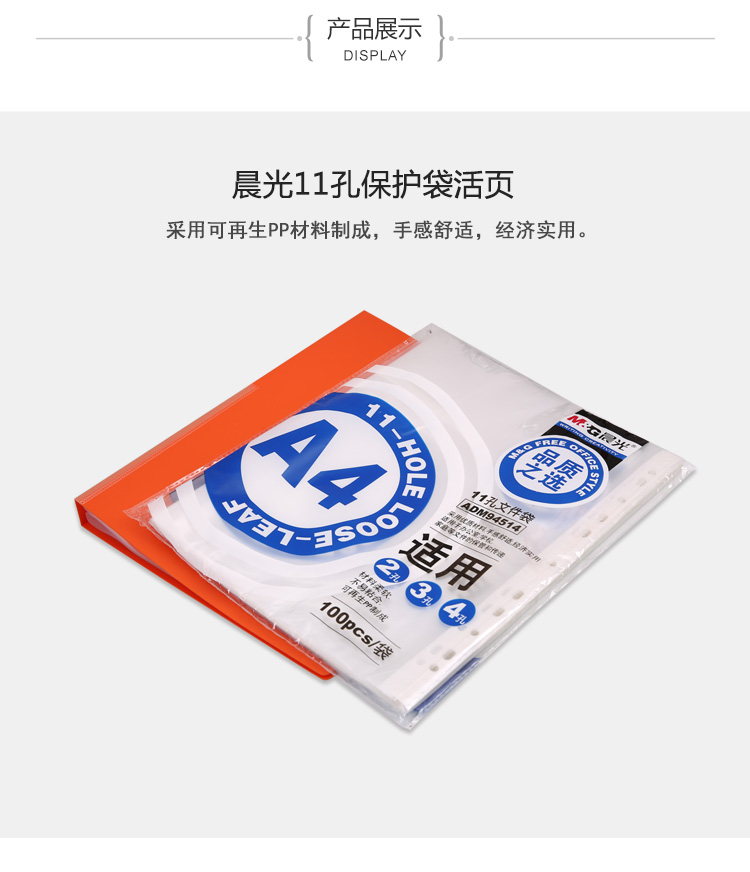 商品名称:晨光(M&G) ADM94514 11孔保护袋活页 100个/包