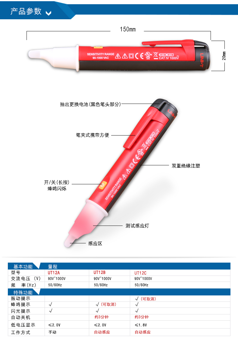 商品名称:优利德 UNI-T UT12A 感应式试电笔