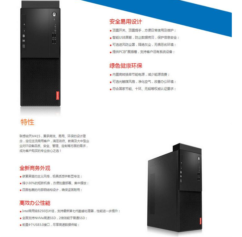 - 商品名称:联想(Lenovo)启天M415-D070 台式电脑 Intel酷睿I5-7500 3.4GHz四核 4G-DDR4内存 1T SATA硬盘 集显 DVDRW DOS +19.5英寸显示器 网络同传 含键鼠 原厂五年上门保修服务(含显示器)原厂三年硬盘不回收 原厂门到桌服务