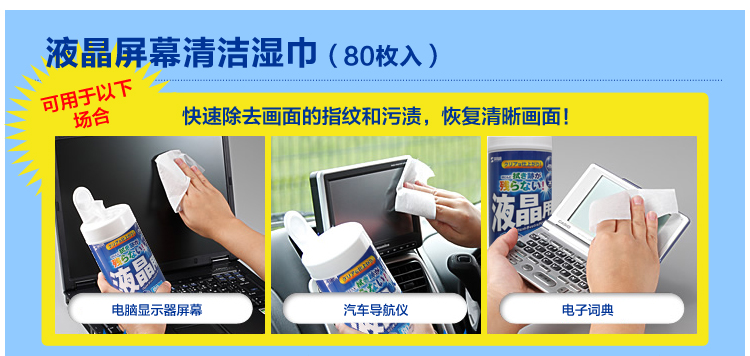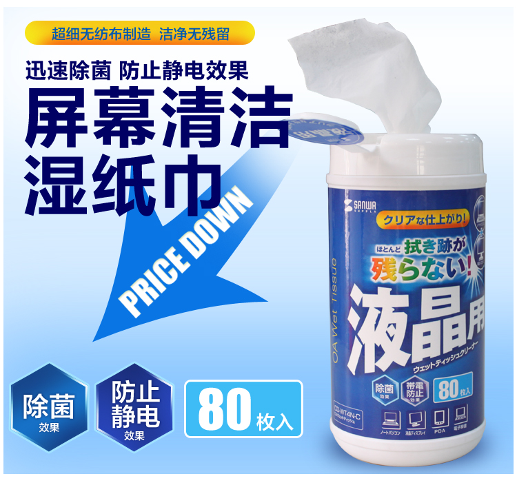 商品名称:山业SANWA 80抽电脑清洁湿纸巾 液晶屏幕清洁 除霉除菌(CD-WT4N-C)