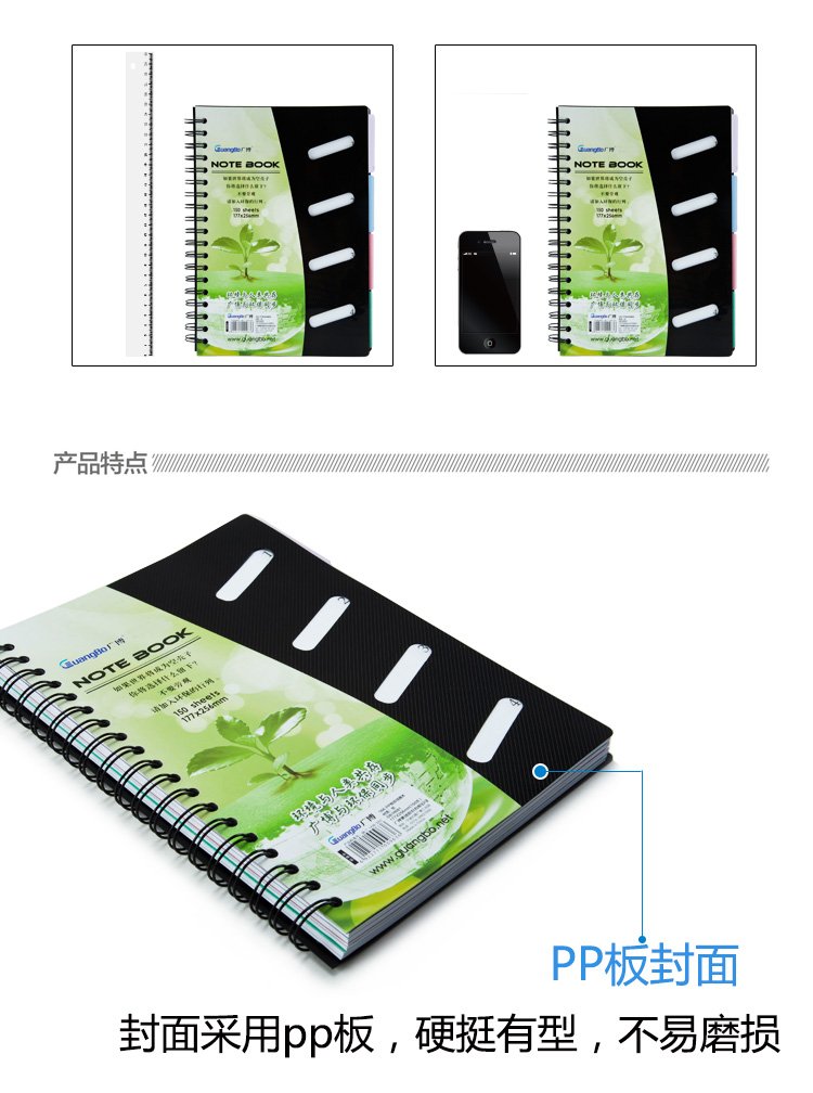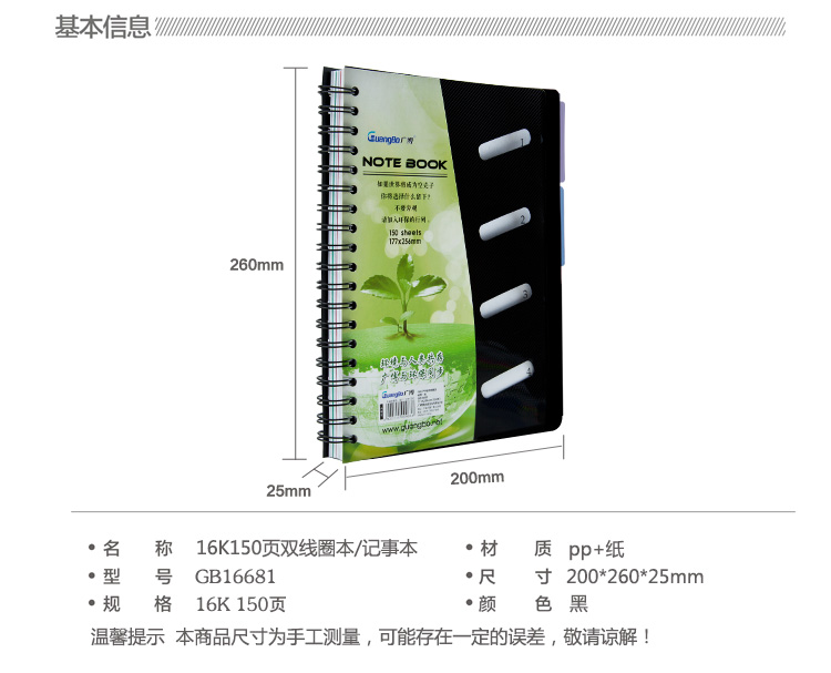 商品名称:广博 GB16681 16K150页PP板双线圈本