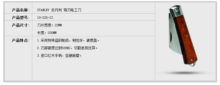 商品名称:史丹利 STANLEY 10-226 弯刃电工刀