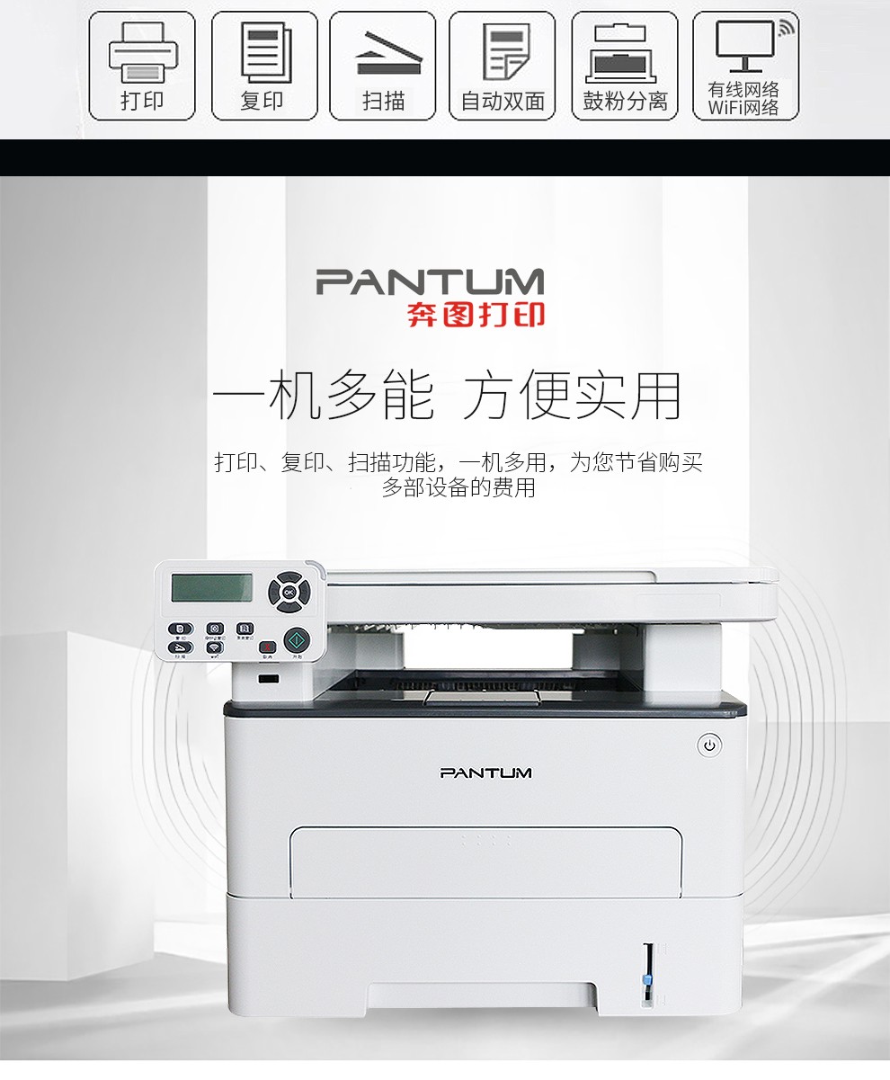 奔图(PANTUM) M6700DW 黑白激光多功能一体机打印复印扫描双面网络办公打印机 M6700DW