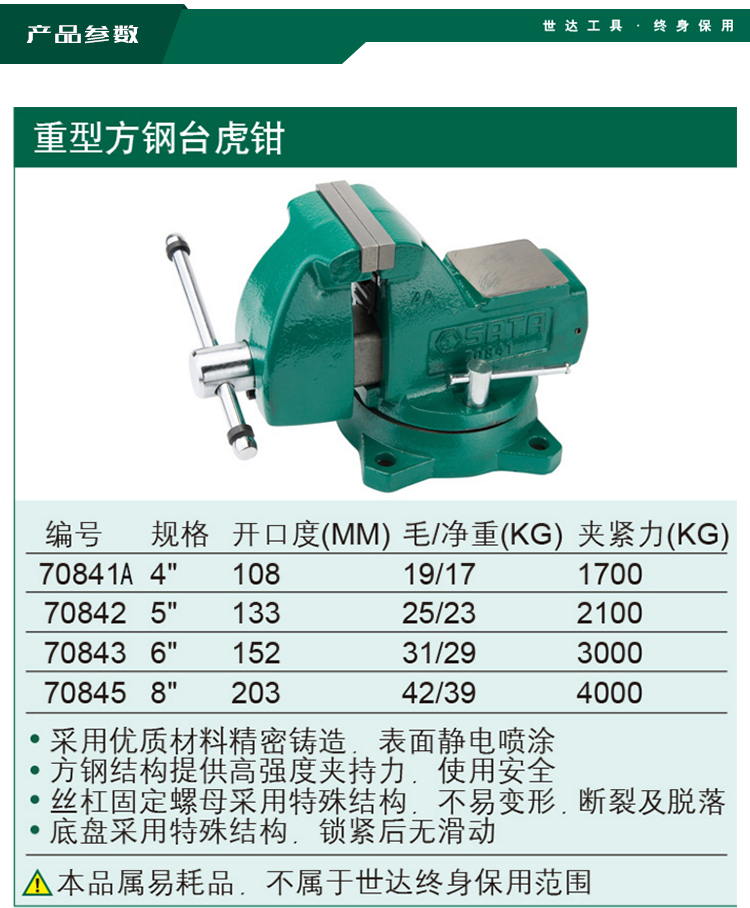 商品名称:世达(SATA)70841A 重型方钢台虎钳 4寸