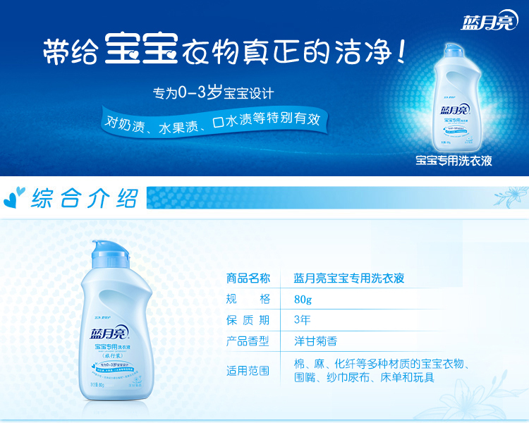商品名称:蓝月亮 80g/瓶 宝宝专用洗衣液旅行装百合清香