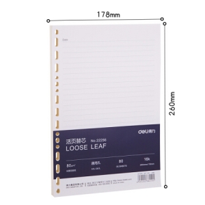 - 商品名称:得力 22257 米黄活页替芯-25k-210mm*145mm/80张(黑)