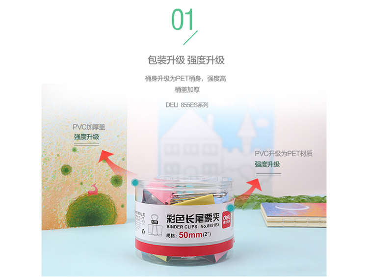 商品名称:得力 8554ES 彩色长尾票夹筒装(混)