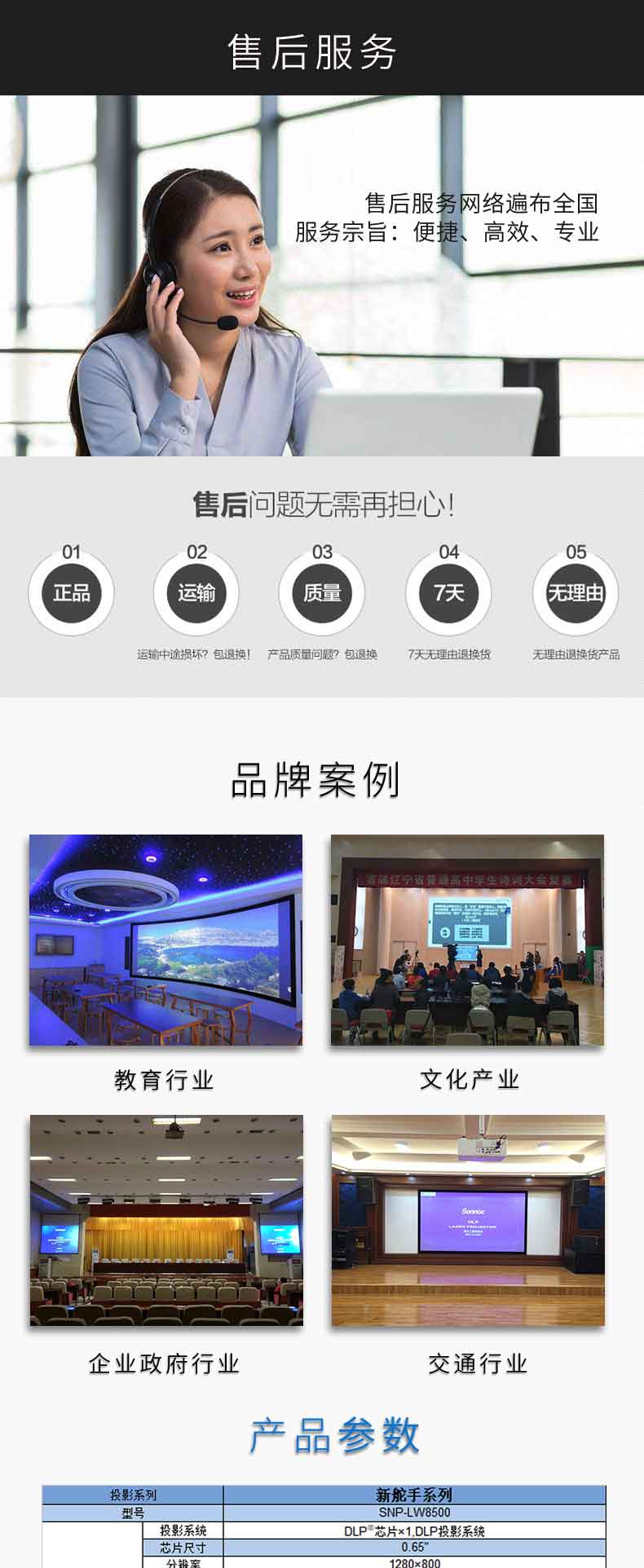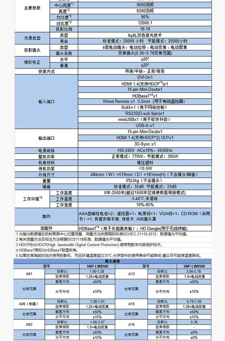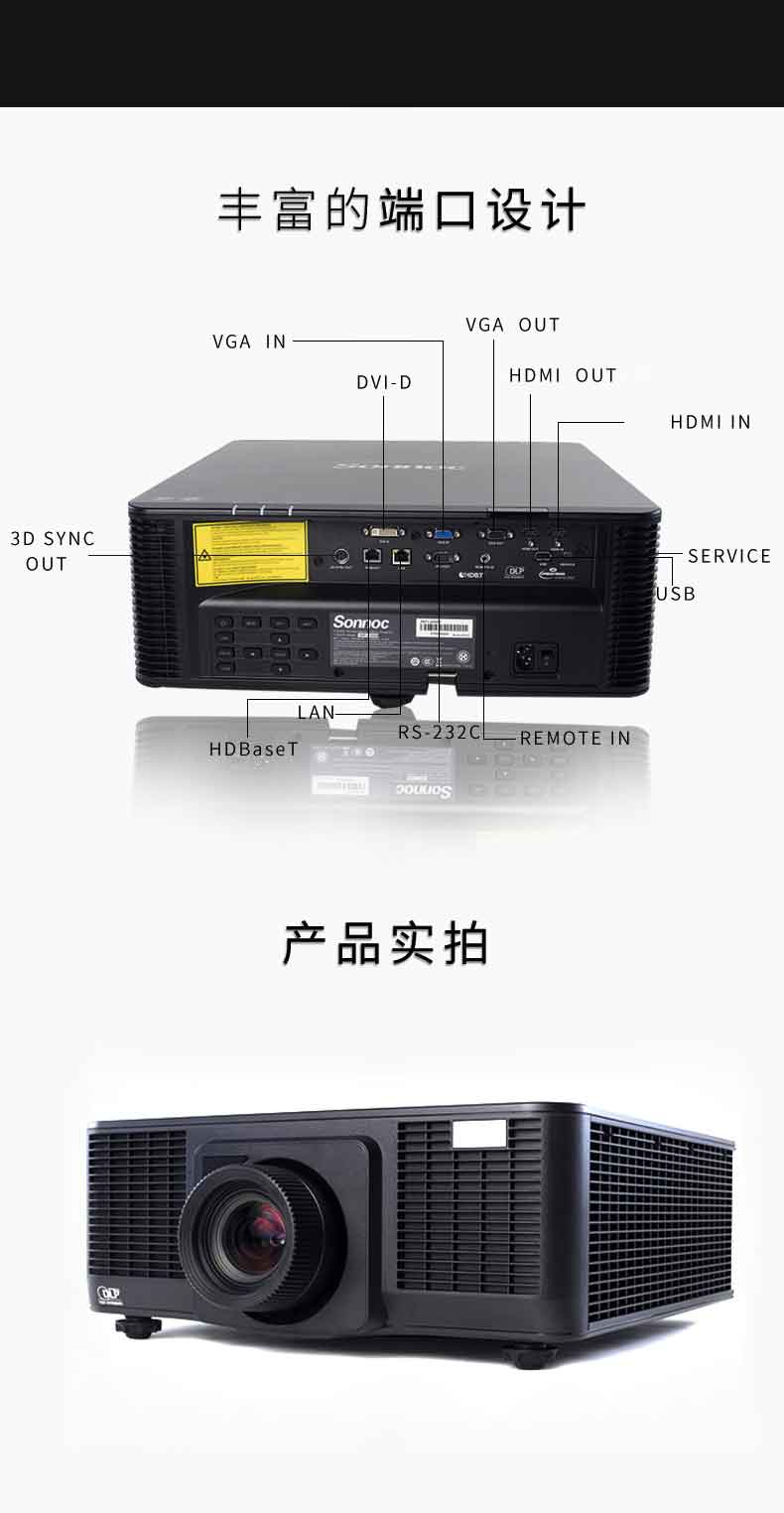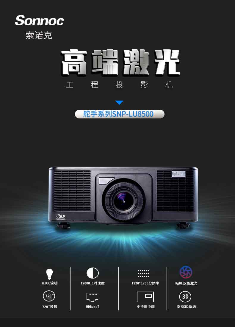 商品名称:索诺克(Sonnoc)SNP-LU8500 工程高端投影仪 全高清会议投影机(WUXGA/8200流明/激光光源/含镜头)上门安装