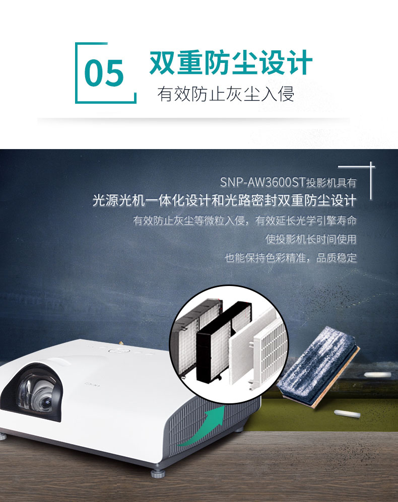 索诺克(Sonnoc)SNP-AW3600ST 直投激光短焦液晶投影机(WXGA/3600流明)