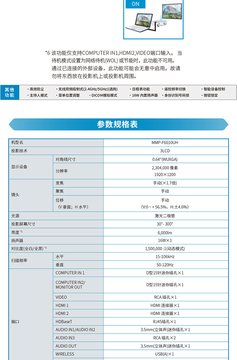 商品名称:麦克赛尔(Maxell)MMP-F6010UH 液晶投影机(6000流明/WUXGA)