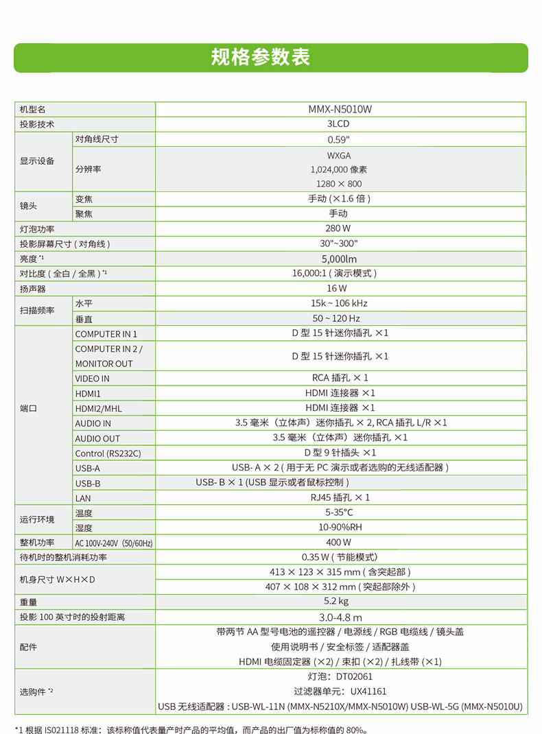 商品名称:麦克赛尔(Maxell)MMX-N5010W 激光投影机(5000流明/WXGA)