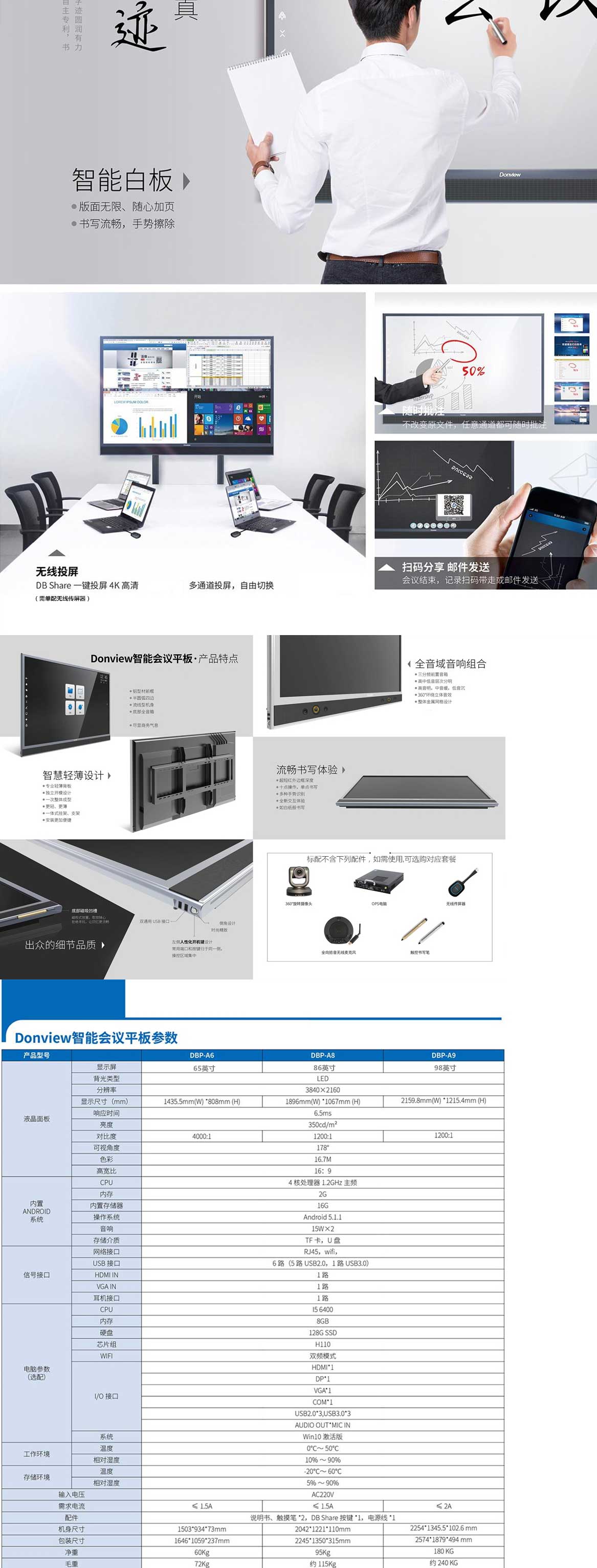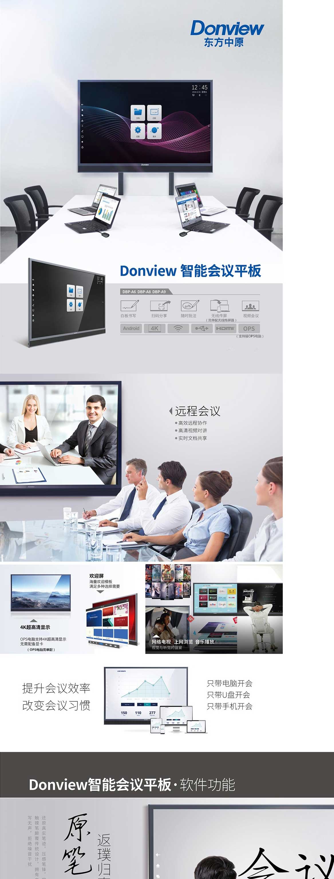 - 商品名称:东方中原(Donview)增强型DBP-A6 智能会议平板(安卓4核 红外触控 4K 无线传屏 支持接OPS电脑) (65英寸) 标配(不带OPS电脑)