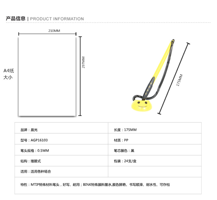 商品名称:晨光 0.5mm微笑服务台笔 黑色 AGP16103