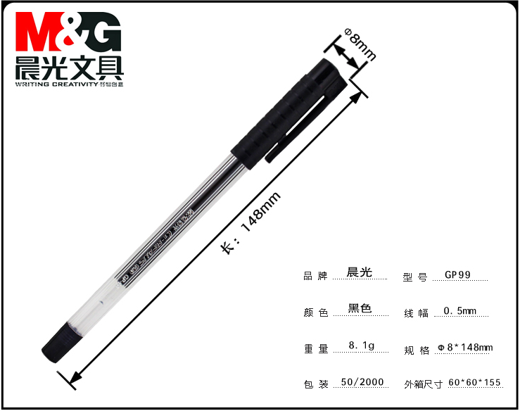 商品名称:晨光(M&G) GP99 中性笔阿一透明杆水笔 0.5mm 办公学习用品 50支/筒