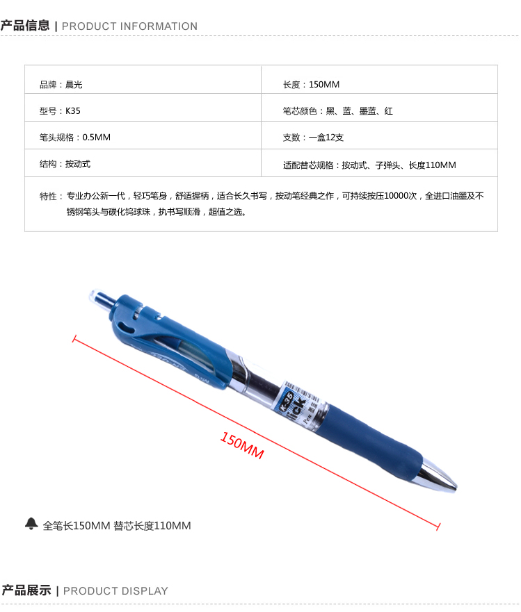 商品名称:晨光 (M&G) K-35 子弹头中性笔 0.5mm