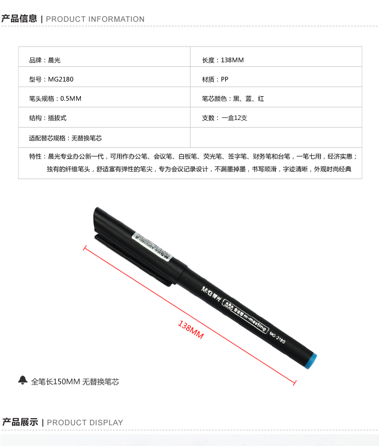商品名称:晨光文具 MG2180 碳素纤维头签字笔 会议笔 中性笔 0.5mm