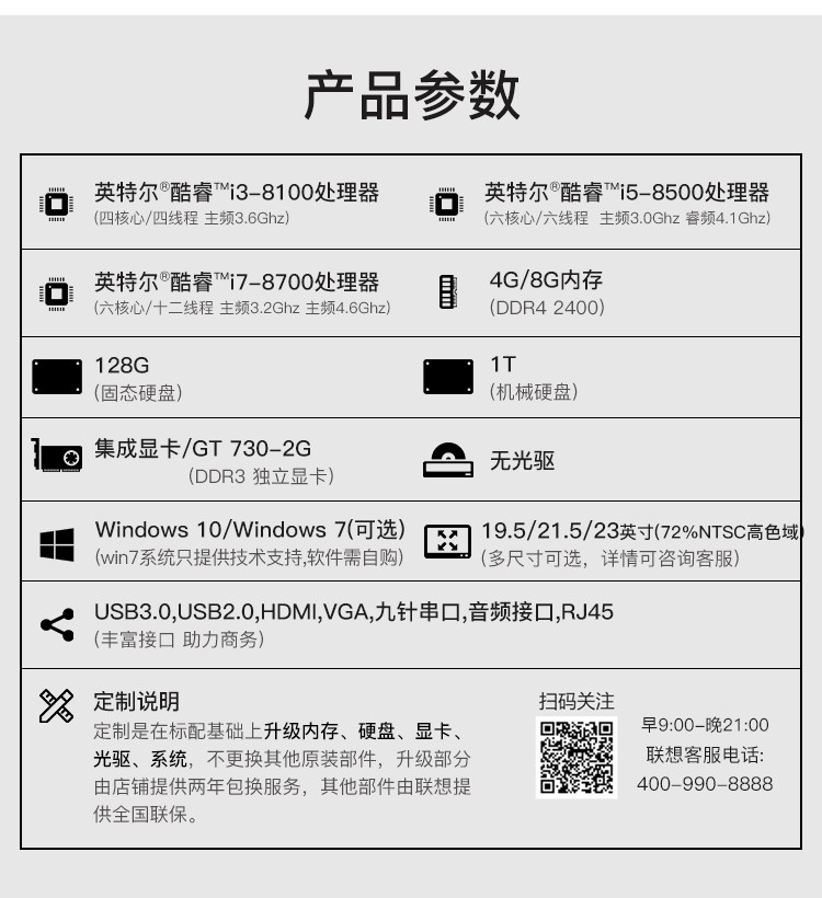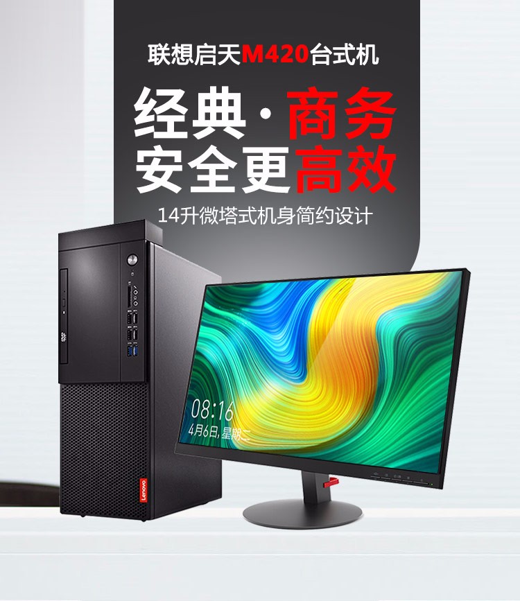 联想(Lenovo) 启天M420-D016 i3-8100/B360/4GB/1TB+128GB/集显/DVDRW/保修3年/单主机/DOS