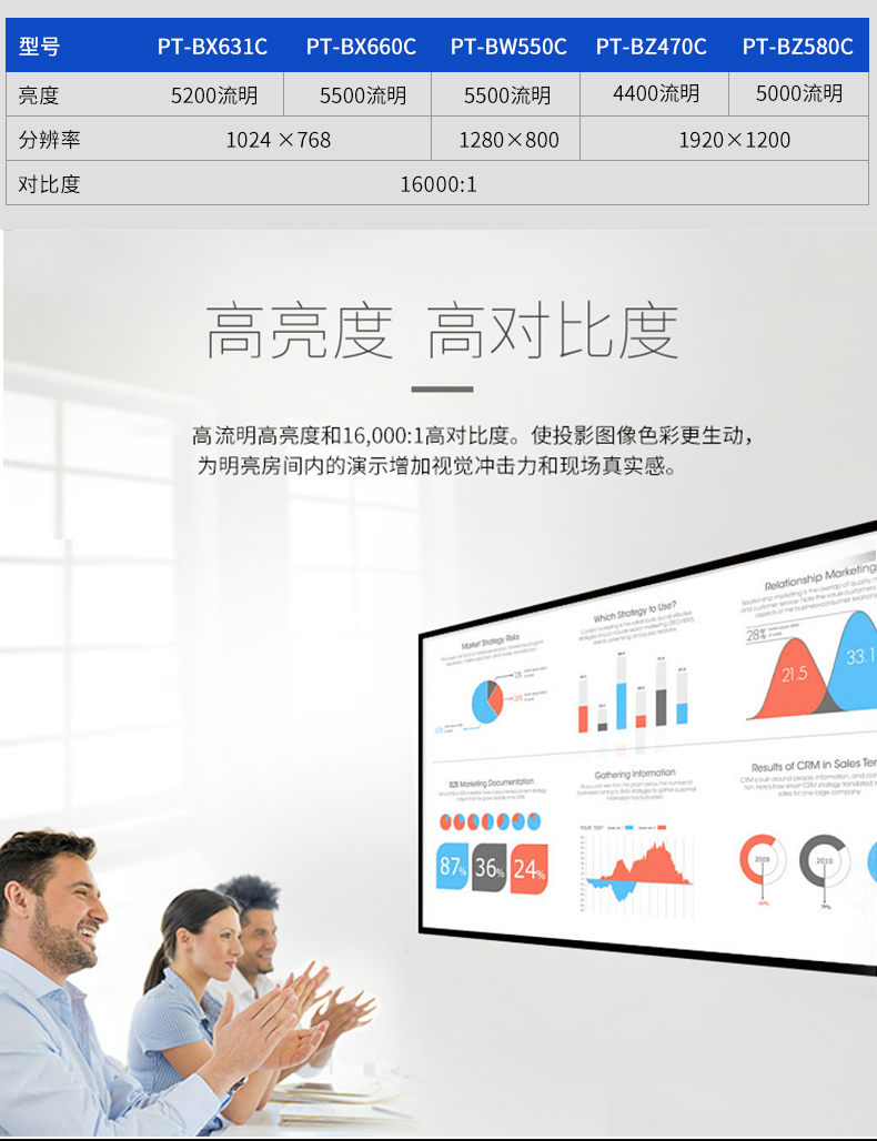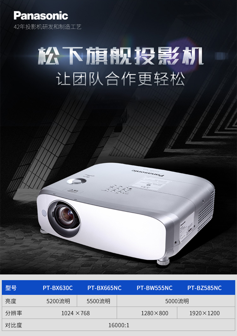 商品名称:松下(Panasonic) PT-BZ480C 3LCD商务投影仪 4500流明/1920*1200分辨率/16000:1对比度
