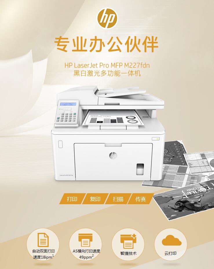 商品名称:惠普 LaserJet Pro MFP M227fdn