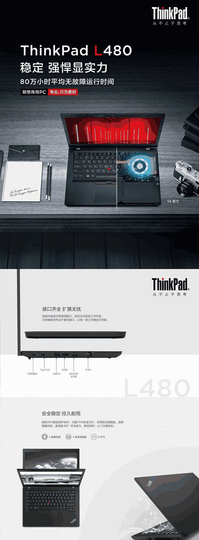 商品名称:联想(Lenovo) ThinkPad L480-262 笔记本电脑 /i5-8250U/集成/16G/256G固态/2G独显/无光驱/14英寸/DOS