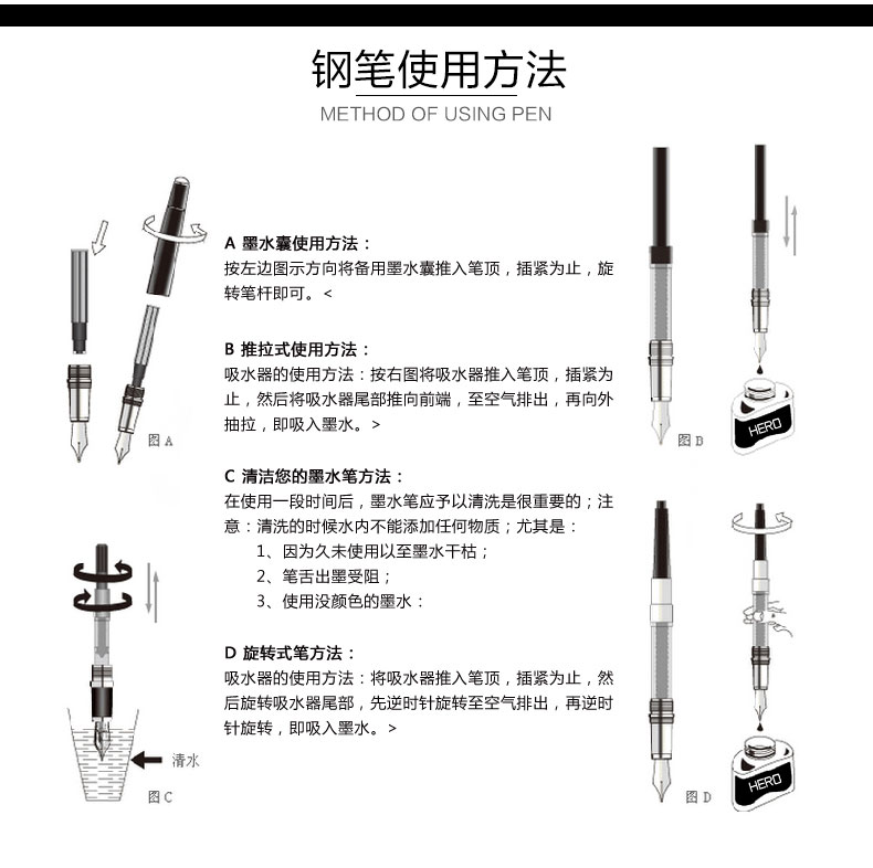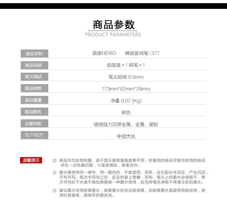 商品名称:HERO英雄377纯黑依金笔 英雄墨水笔