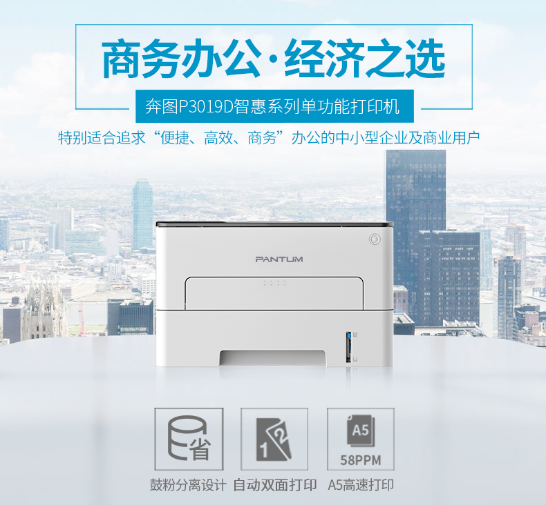 商品名称:奔图(Pantum) P3019D A4 黑白 激光打印机 自动双面