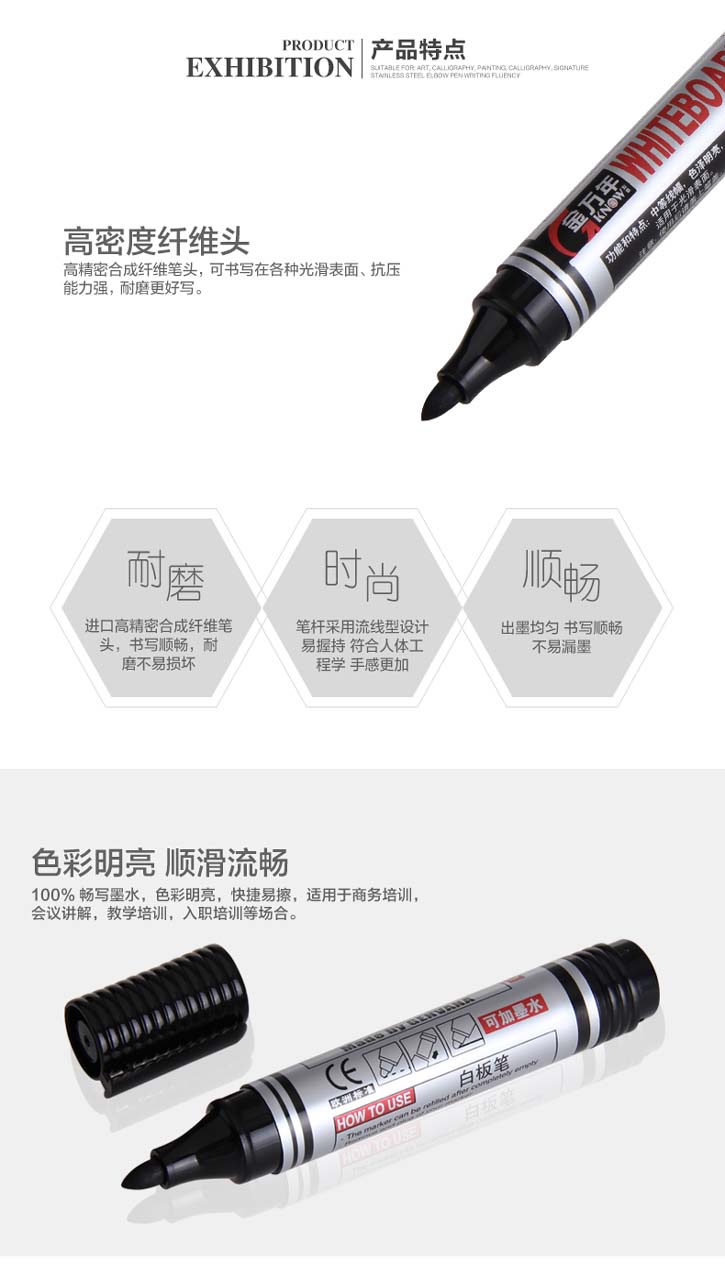 - 商品名称:金万年 G-634 可加墨水白板笔 10支/盒