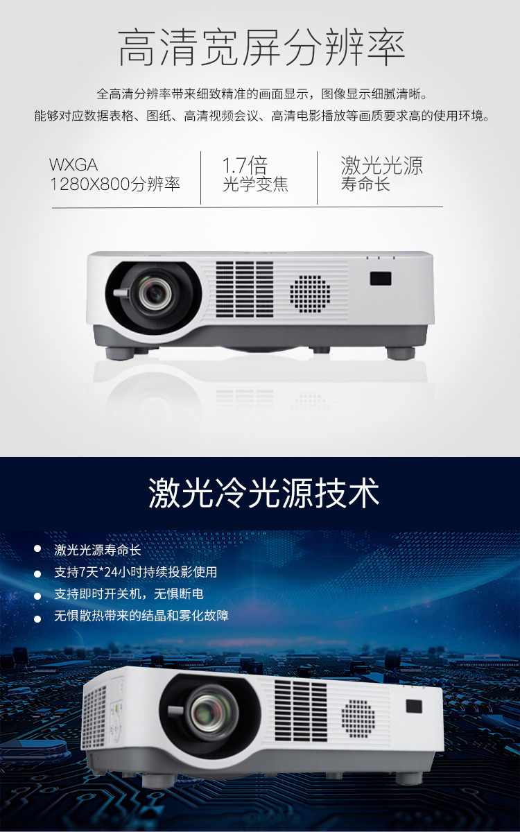 商品名称:NEC NP-CE5500WL DLP高清激光教育投影机 5000流明/1280*800分辨率/20000:1对比度