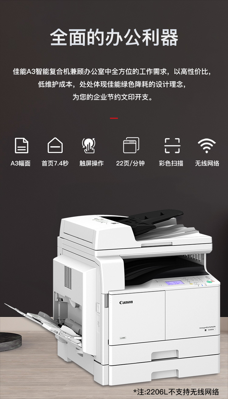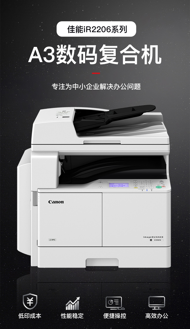 商品名称:佳能(Canon)iR2206L A3黑白激光数码复合机复印机含盖板(打印/复印/扫描)复印机iR2204L升级型号