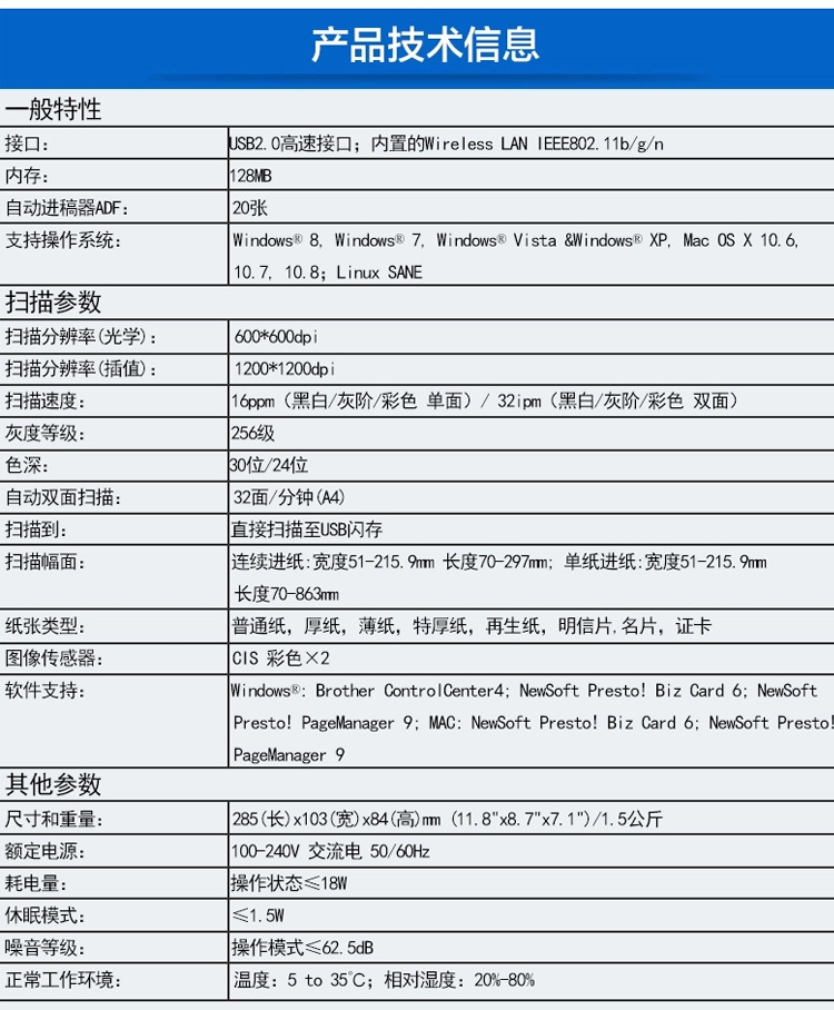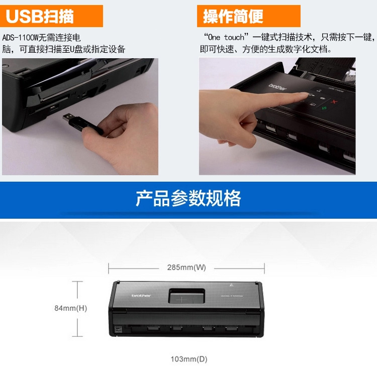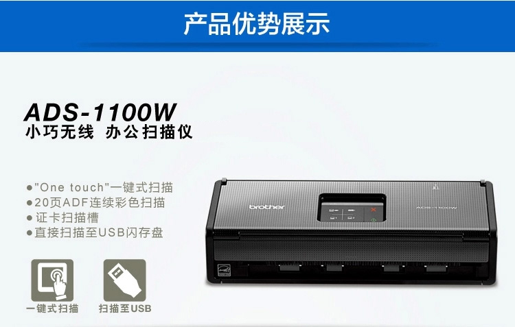 商品名称:兄弟(Brother) ADS-1100W 便携式馈纸扫描仪