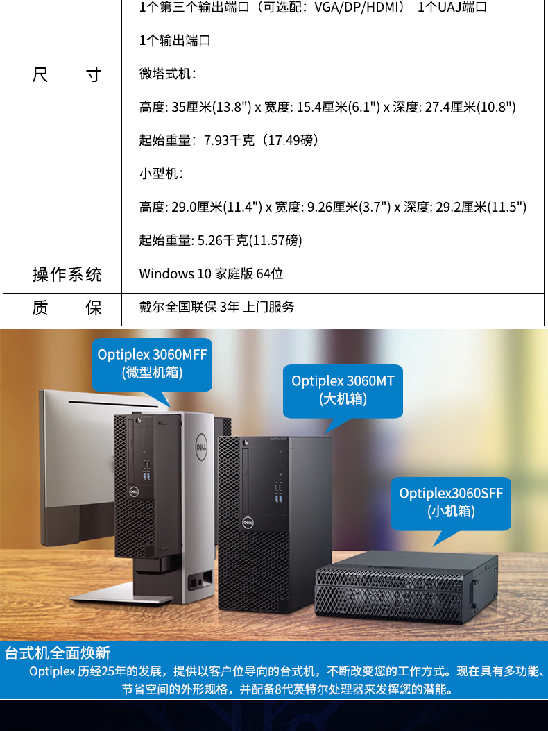 商品名称:戴尔(DELL) OptiPlex 3060 Tower 230830 台式计算机 i5-8500/H370/4GB/1TB/集成/DVD刻录光驱
