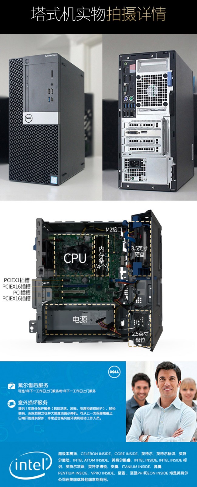 商品名称:戴尔(DELL)OptiPlex 7050 Tower 240479 台工计算机 I7-6700/Q270/8G/256G+1T/独立/2G/DVDrw