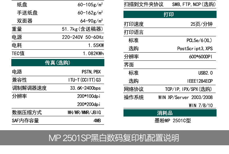 商品名称:理光(Ricoh)MP 2501SP A3黑白数码复合机