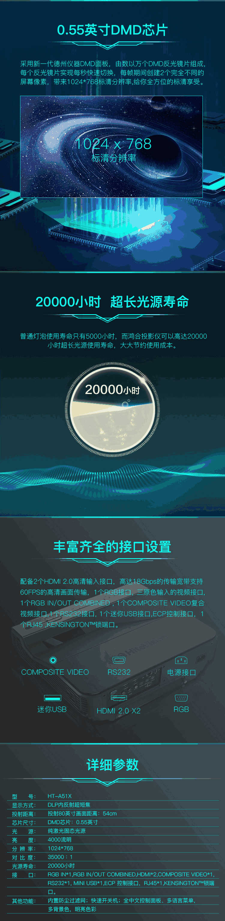 商品名称:鸿合(HiteVision)HT-A51X激光超短焦投影机