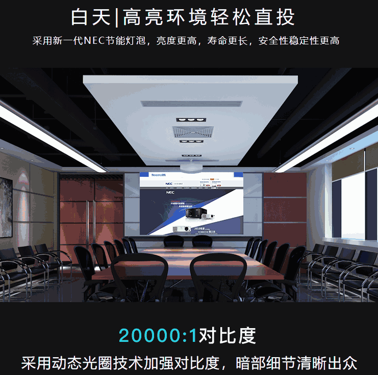 NEC NP-CF6600U 投影仪 投影机办公 超高清 5600流明 1.6倍大变焦 镜头位移