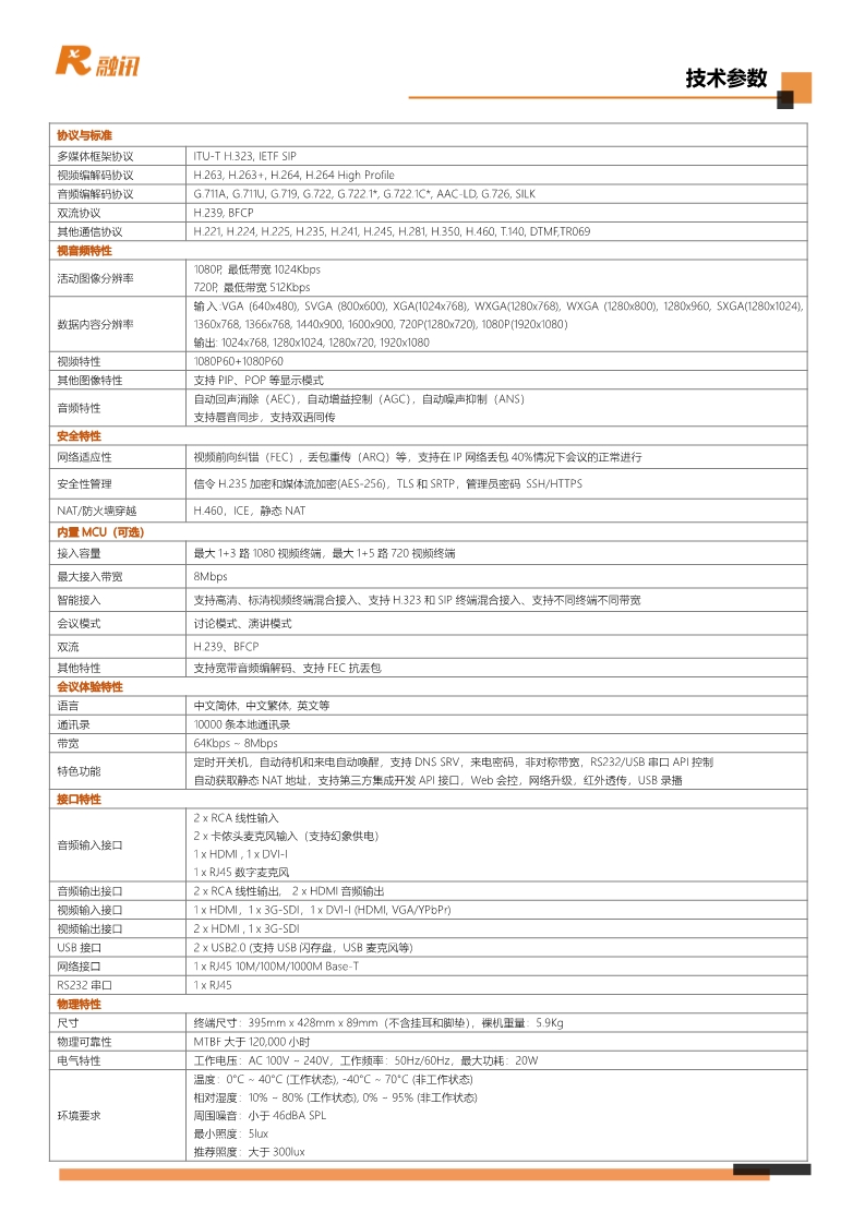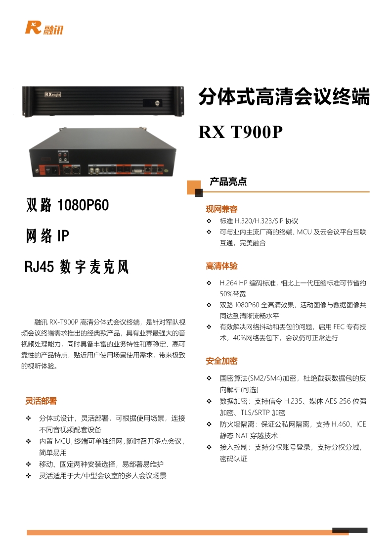 - 商品名称:融讯/RX RX T900P-F 会议电视终端
