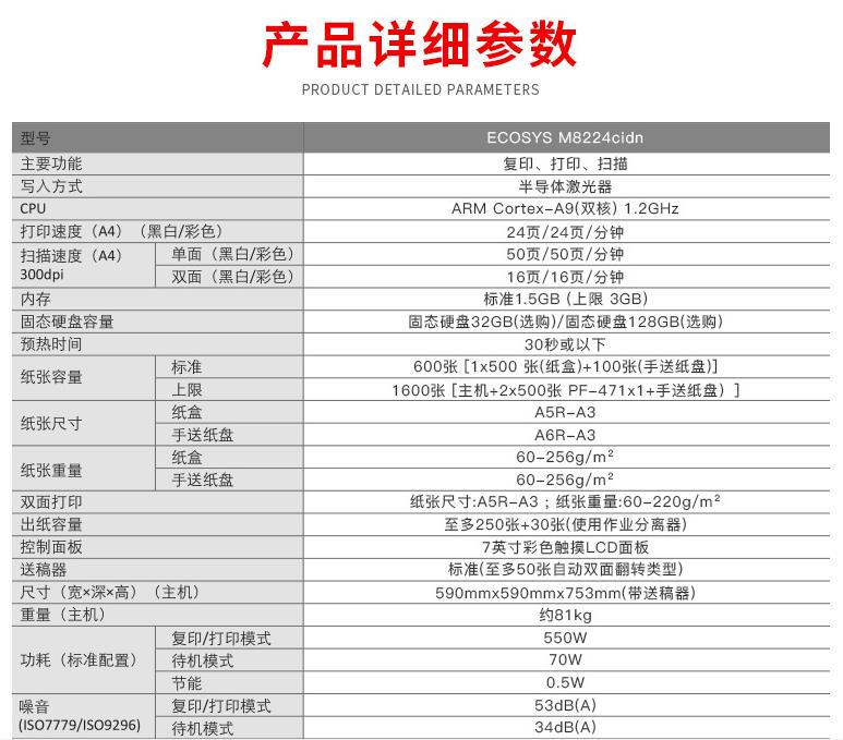 商品名称:京瓷(KYOCERA)ECOSYSM8224cidn.A3幅面彩色复印机