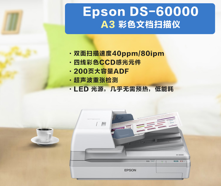 - 商品名称:爱普生(EPSON) DS-60000 A3幅面高速彩色扫描仪