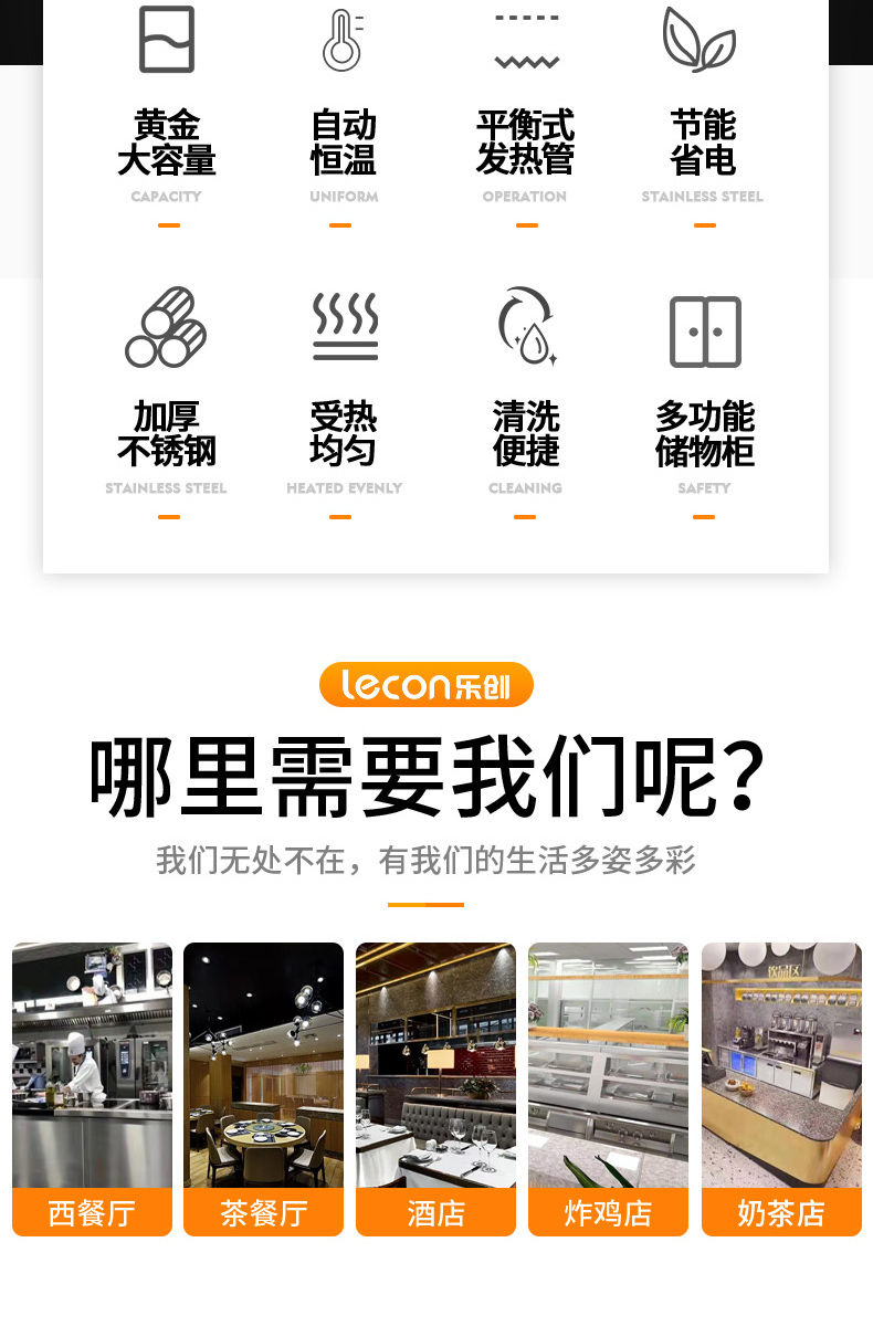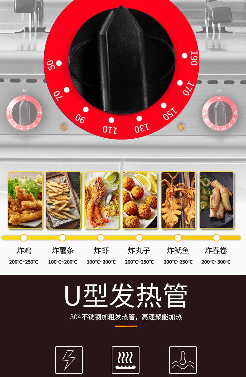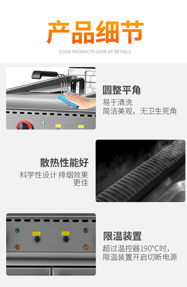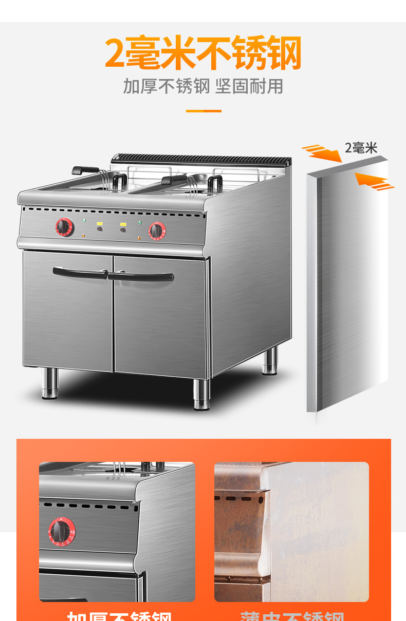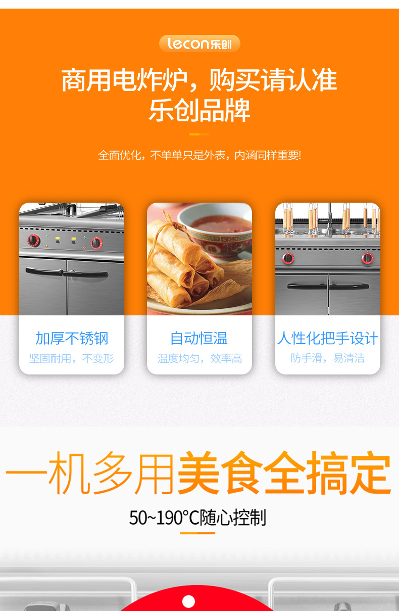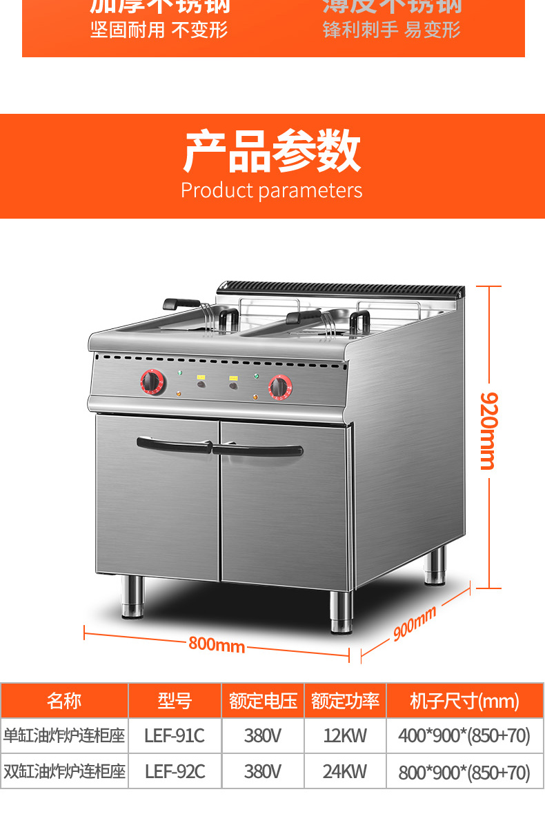 商品名称:乐创 电力双缸油炸炉连柜座(304/2.0拉伸台面,EGO温控)