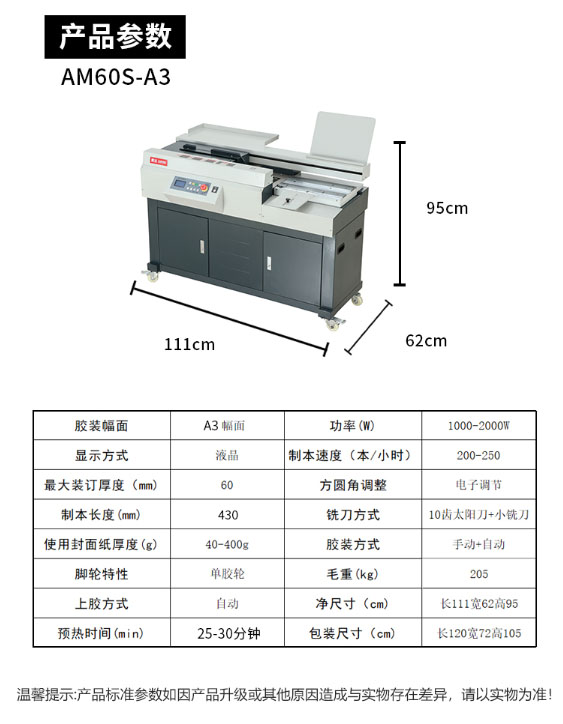 震旦 AM60S-A3 60mm全自动柜式无线胶装机 A3幅面标书文件书籍论文报告合同 热熔胶粒装订机 白灰