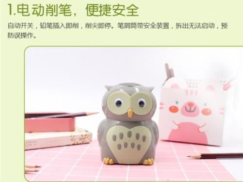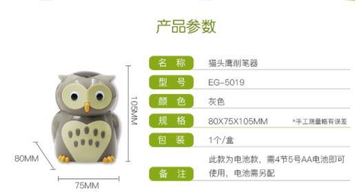 商品名称:益而高 EG-5019 猫头鹰电动削笔器 电池款 削笔机多功能转笔刀刨笔机卡通造型