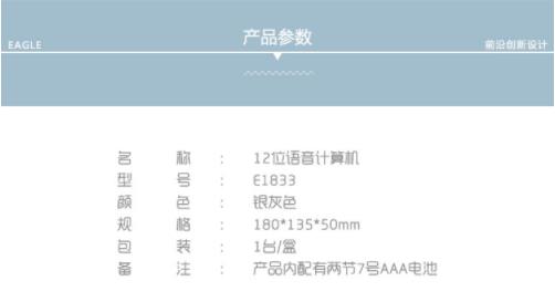 商品名称:益而高 E1833 语音计算器 12位 银灰色