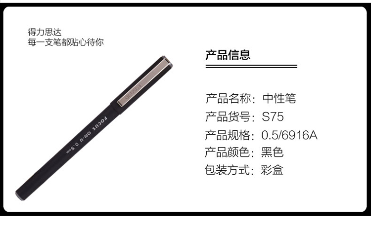 商品名称:得力(deli)S75 金属笔夹中性笔 0.5mm 黑色 (计价单位:支)