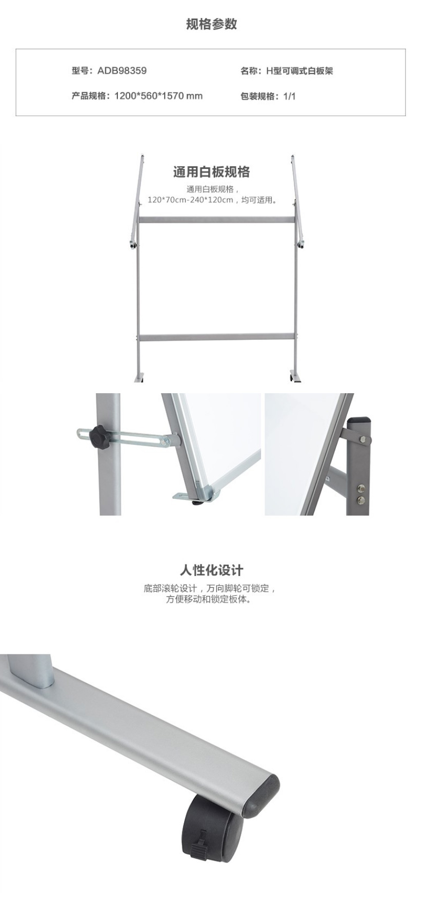 商品名称:晨光H型可调式白板架1200*560*1570ADB98359