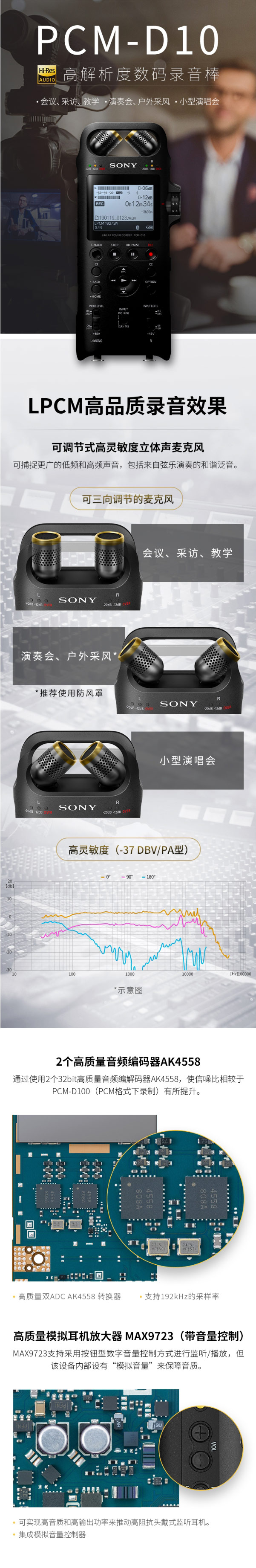 商品名称:索尼(SONY)专业数码录音笔PCM-D10 16GB 黑色 数字降噪Hifi无损播放 大直径三向双麦克风