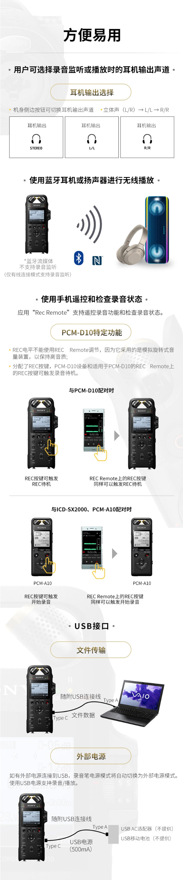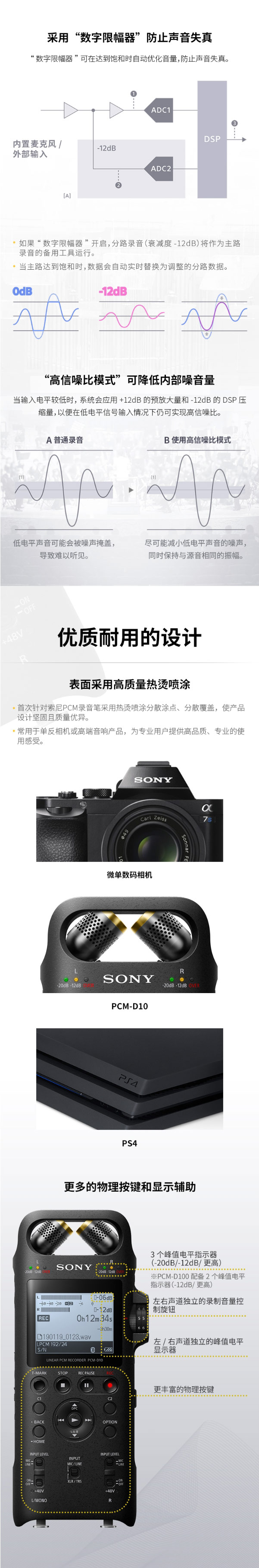 索尼(SONY)专业数码录音笔PCM-D10 16GB 黑色 数字降噪Hifi无损播放 大直径三向双麦克风
